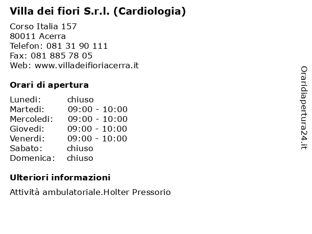 1 Villa dei fiori S.r.l. (Cardiologia) (distanza: 0,00 km) Corso Italia 157, 80011 Acerra (cardiologia), dei, fiori, informazione, s.r.l., servizi, villa 2 Villa dei fiori S.r.l. (Cardiologia) (distanza: 0,00 km) Corso Italia 157, 80011 Acerra (cardiologia), dei, fiori, informazione, s.r.l., servizi, villa 3 Villa dei fiori S.r.l. (Cardiologia) (distanza: 0,00 km) Corso Italia 157, 80011 Acerra (cardiologia), dei, fiori, informazione, s.r.l., servizi, villa 4 Villa dei fiori S.r.l. (Cardiologia) (distanza: 0,00 km) Corso Italia 157, 80011 Acerra (cardiologia), dei, fiori, informazione, s.r.l., servizi, villa 5 Villa dei fiori S.r.l. (Cardiologia) (distanza: 0,00 km) Corso Italia 157, 80011 Acerra (cardiologia), dei, fiori, informazione, s.r.l., servizi, villa 6 Villa dei fiori S.r.l. (Cardiologia) (distanza: 0,00 km) Corso Italia 157, 80011 Acerra (cardiologia), dei, fiori, informazione, s.r.l., servizi, villa |