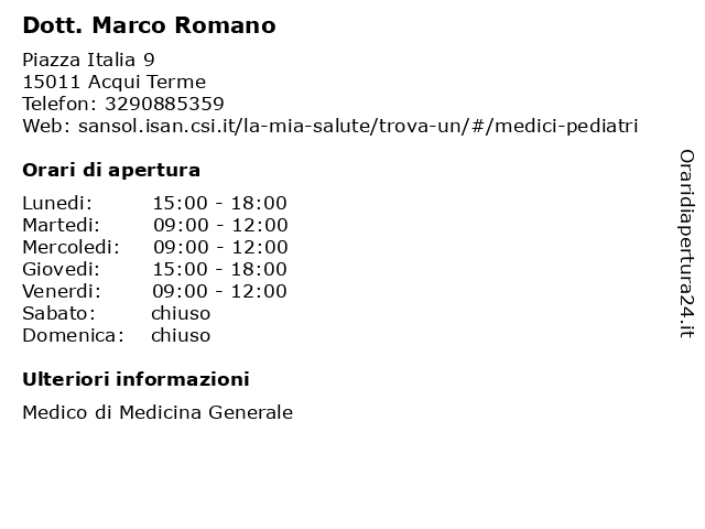 | Giovedi | 15:00-18:00 |