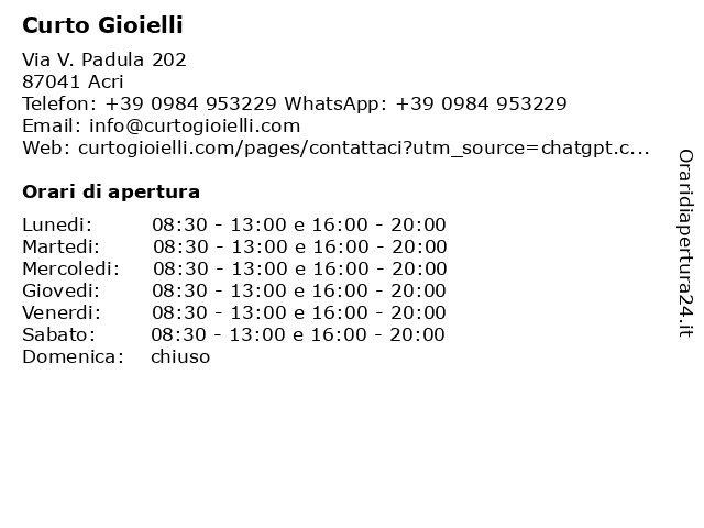| Sabato | 08:30-13:00 e 16:00-20:00 |