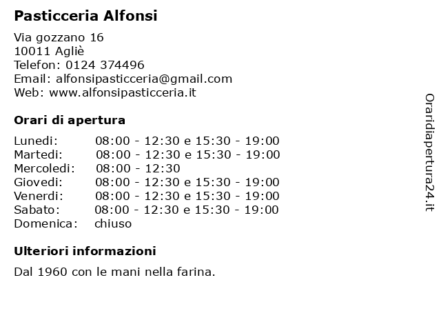 | Lunedi | 08:00-12:30 e 15:30-19:00 |
