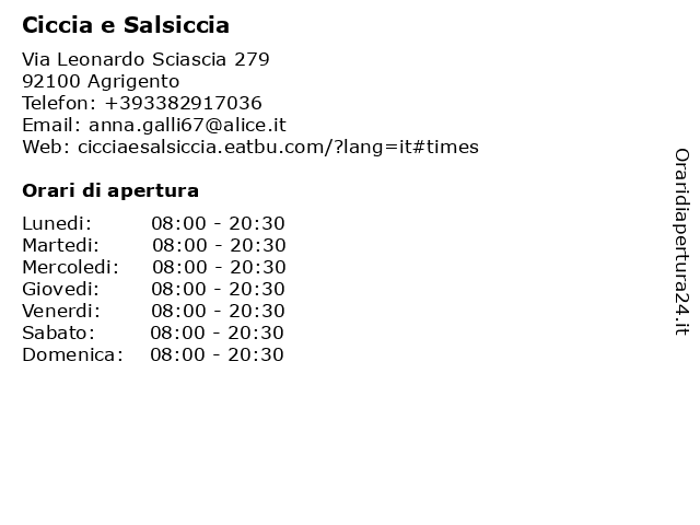 Sabato | 08:00-20:30 |
