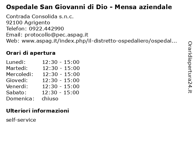 | Giovedi | 12:30-15:00 |