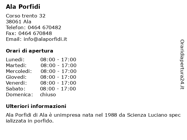 | Lunedi | 08:00-17:00 |