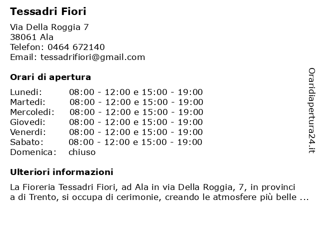 | Sabato | 08:00-12:00 e 15:00-19:00 |