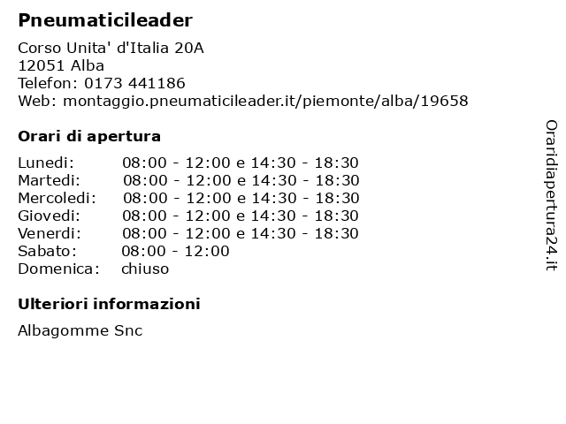 | Lunedi | 08:00-12:00 e 14:30-18:30 |