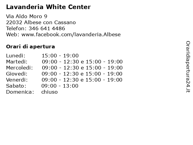 | Venerdi | 09:00-12:30 e 15:00-19:00 |