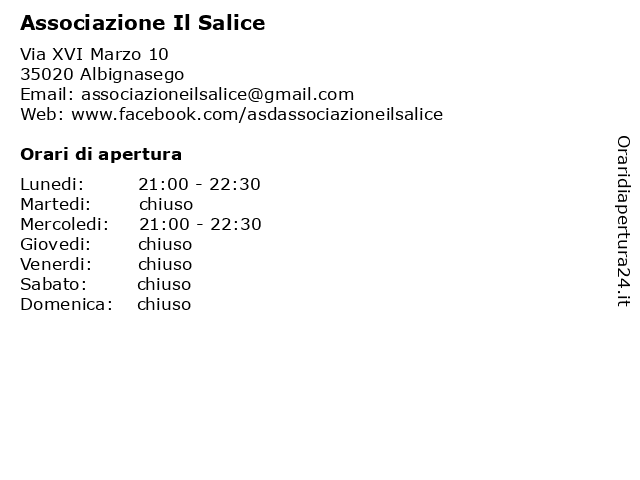 | Sabato | chiuso |