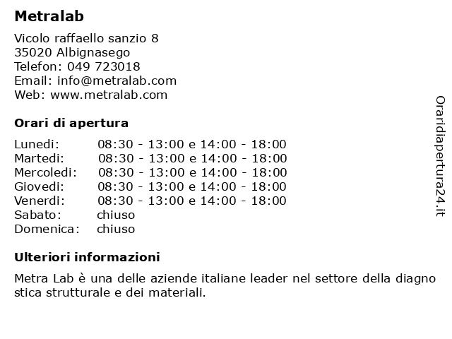 | Lunedi | 08:30-13:00 e 14:00-18:00 |