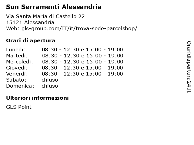 | Lunedi | 08:30-12:30 e 15:00-19:00 |