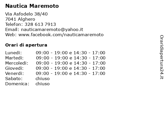 1 Shardanautica - Agenzia e Scuola Nautica Melis (distanza: 0,14 km) Viale 24 Maggio 3/g, 07041 Alghero agenzia, melis, motorizzazione civile, nautica, scuola, shardanautica 2 Maremoto Noleggio Gommoni - Boat Rental (distanza: 0,17 km) Via Garibaldi s.n.c., 07041 Alghero agenzia, barca, barche, boat, gommoni, maremoto, noleggio, rental, servizio, vendita 3 Nautica Canu (distanza: 0,57 km) Via Vittorio Veneto 80, 07041 Alghero canu, nautica, rimessaggio camper 4 NAUTICA SERVICE di Angelo Angius (distanza: 0,64 km) 8° Zona Corea, 24 - S.M. La Palma snc, 07041 Alghero angelo, angius, auto, auto nuova, auto usata, autofficine, bus service, carrozzeria, componenti auto, concessionaria, concessionario, controllo, dacia, di, hobby, isuzu, iveco, jeep autofficina, nautica, service 5 Top Nautica Di Agri Dario (distanza: 1,15 km) Regione San Marco, 07041 Alghero agri, barche, dario, nautica, rivend, top 6 Noleggio Barche Nautica Piga (distanza: 4,49 km) SS 127 Bis 9, 07041 Fertilia barche, gommoni, imbarcazioni, nautica, noleggio, piga |