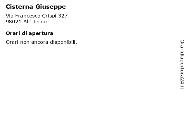 1 La Cisterna del Moro (distanza: 20,81 km) Via Bonifacio 1, 98039 Taormina (ME) cena, cisterna, del, la, mangiare, moro, pranzo, ristorante 2 Ditta Grioli Santi di Grioli Giuseppe & C. (distanza: 0,03 km) Via Mastroguglielmo 13/17, 98021 Ali' Terme articoli, c., comm, dett, ditta, giuseppe, grioli, santi, vari 3 Cernuto Biagio (distanza: 0,09 km) Piazza Nino Prestia 14, 98021 Ali' Terme biagio, cernuto, macellerie, pescherie, salumerie 4 Crisafulli Giuseppe (distanza: 0,10 km) Via Francesco Crispi 306, 98021 Ali Terme articoli, comm, crisafulli, dett, giuseppe, vari 5 Mazzucco Paolo (distanza: 0,43 km) Via Marchese Di Gran. Snc, 98021 Ali' Terme macellerie, mazzucco, paolo, pescherie, salumerie 6 Fama' Biagio Cateno (distanza: 0,77 km) Via Roma 36, 98021 Ali' Terme biagio, cateno, fama, macellerie, pescherie, salumerie |