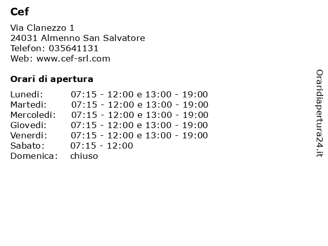 Lunedi | 07:15-12:00 e 13:00-19:00 |