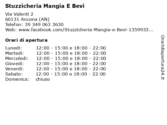 | Lunedi | 12:00-15:00 e 18:00-22:00 |