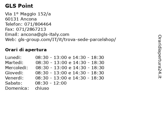 | Lunedi | 08:30-13:00 e 14:30-18:30 |
