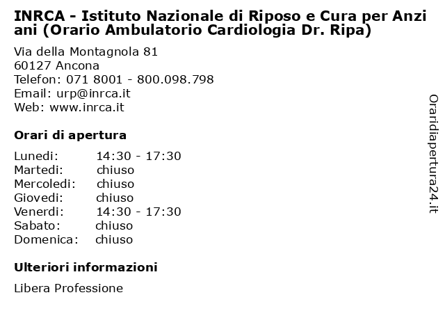 Tag di ricerca per INRCA - Istituto Nazionale di Riposo e Cura per Anziani (Orario Ambulatorio Cardiologia Dr. Ripa):di, per, dr., cura, ambulatorio, nazionale, analisi cliniche, ospedale, (orario, riposo, istituto, anziani, cardiologia, visite specialistiche, esami diagnostici, cure mediche, inrca, ripa) |