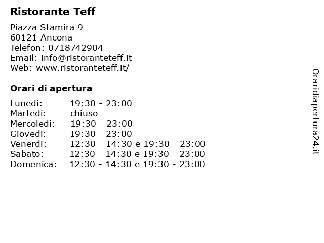| Domenica | 12:30-14:30 e 19:30-23:00 |