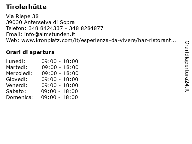 | Lunedi | 09:00-18:00 |