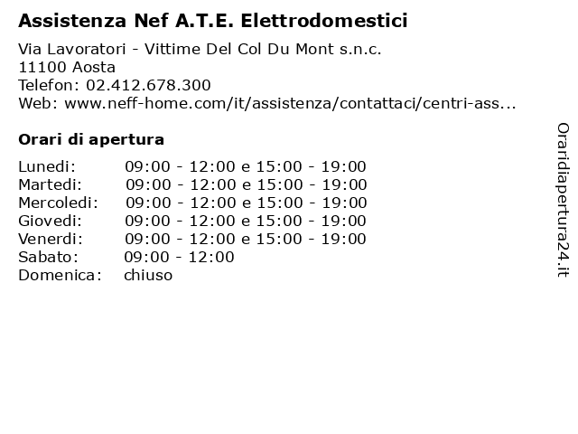 | Lunedi | 09:00-12:00 e 15:00-19:00 |