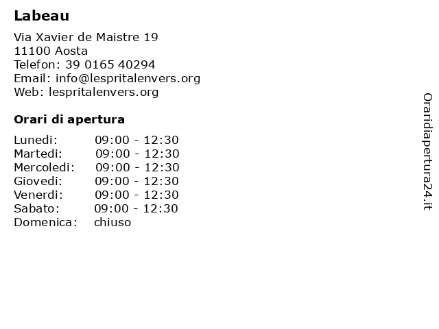| Lunedi | 09:00-12:30 |
