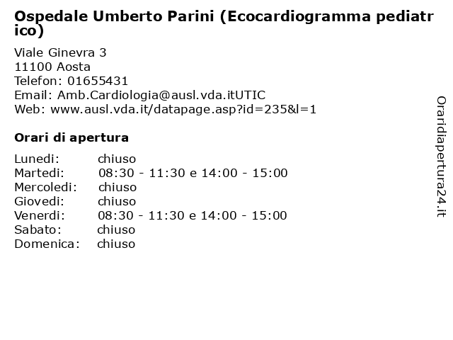 1 Ospedale Umberto Parini (Ambulatori - Piastra) (distanza: 0,00 km) Viale Ginevra 3, 11100 Aosta (ambulatori, medici, ospedale, parini, piastra), salute, umberto 2 Ospedale Umberto Parini (Poliambulatorio di Châtillon) (distanza: 0,00 km) Viale Ginevra 3, 11100 Aosta (poliambulatorio, châtillon), di, medici, ospedale, parini, salute, umberto 3 Ospedale Umberto Parini (Poliambulatorio di Châtillon Ecg + visita cardiologica) (distanza: 0,00 km) Viale Ginevra 3, 11100 Aosta (poliambulatorio, cardiologica), châtillon, di, ecg, medici, ospedale, parini, salute, umberto, visita 4 Ospedale Umberto Parini (Poliambulatorio di Morgex Ecg + visita cardiologica) (distanza: 0,00 km) Viale Ginevra 3, 11100 Aosta (poliambulatorio, cardiologica), di, ecg, medici, morgex, ospedale, parini, salute, umberto, visita 5 Ospedale Umberto Parini (Poliambulatorio di Morgex) (distanza: 0,00 km) Viale Ginevra 3, 11100 Aosta (poliambulatorio, di, medici, morgex), ospedale, parini, salute, umberto 6 Ospedale Umberto Parini (Poliambulatorio di Châtillon Dottor David Pavoncello) (distanza: 0,00 km) Viale Ginevra 3, 11100 Aosta (poliambulatorio, châtillon, david, di, dottor, medici, ospedale, parini, pavoncello), salute, umberto |