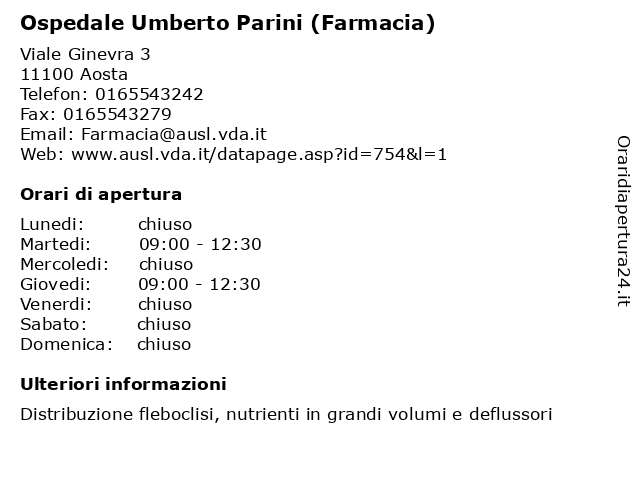 1 Ospedale Umberto Parini (Farmacia) (distanza: 0,00 km) Viale Ginevra 3, 11100 Aosta (farmacia), medici, ospedale, parini, salute, umberto 2 Ospedale Umberto Parini (Farmacia) (distanza: 0,00 km) Viale Ginevra 3, 11100 Aosta (farmacia), medici, ospedale, parini, salute, umberto 3 Ospedale Umberto Parini (Farmacia) (distanza: 0,00 km) Viale Ginevra 3, 11100 Aosta (farmacia), medici, ospedale, parini, salute, umberto 4 Ospedale Umberto Parini (Farmacia) (distanza: 0,00 km) Viale Ginevra 3, 11100 Aosta (farmacia), medici, ospedale, parini, salute, umberto 5 Ospedale Umberto Parini (Ambulatori - Piastra) (distanza: 0,00 km) Viale Ginevra 3, 11100 Aosta (ambulatori, medici, ospedale, parini, piastra), salute, umberto 6 Ospedale Umberto Parini (Poliambulatorio di Châtillon) (distanza: 0,00 km) Viale Ginevra 3, 11100 Aosta (poliambulatorio, châtillon), di, medici, ospedale, parini, salute, umberto |