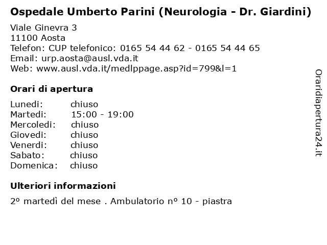 Tag di ricerca per Ospedale Umberto Parini (Neurologia - Dr. Giardini):dr., ambulatorio, ospedale, umberto, parini, neurologia, giardini), (neurologia, ambulatorio specialistico, specialità neurologia |
