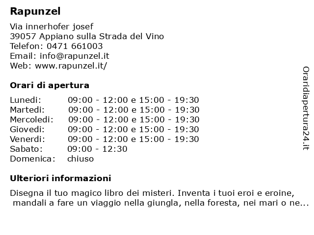 | Venerdi | 09:00-12:00 e 15:00-19:30 |