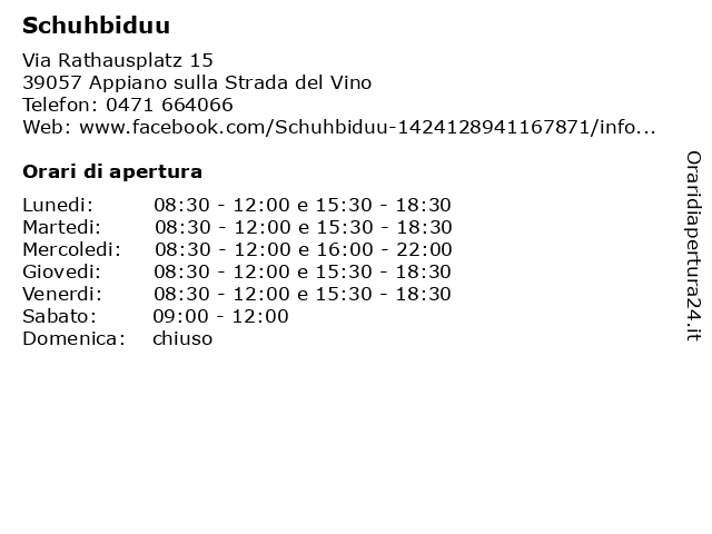 | Lunedi | 08:30-12:00 e 15:30-18:30 |