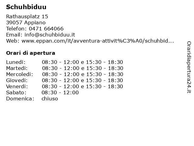 | Lunedi | 08:30-12:00 e 15:30-18:30 |