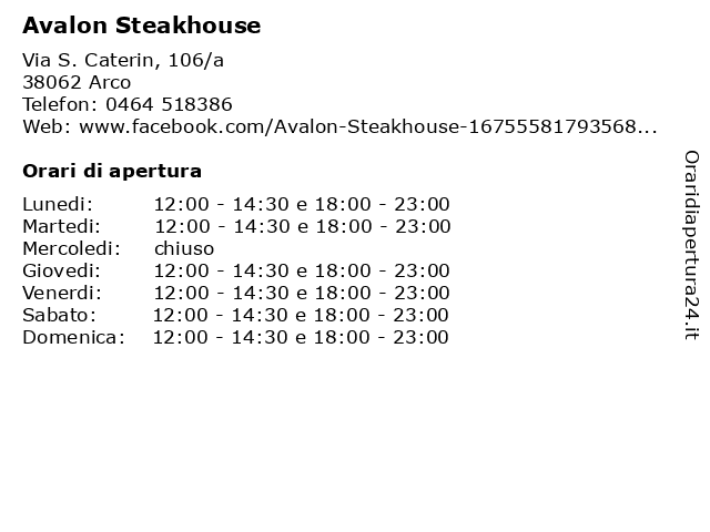 | Lunedi | 12:00-14:30 e 18:00-23:00 |