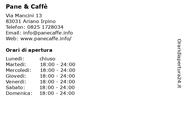| Giovedi | 18:00-24:00 |