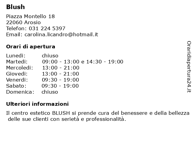 | Martedi | 09:00-13:00 e 14:30-19:00 |