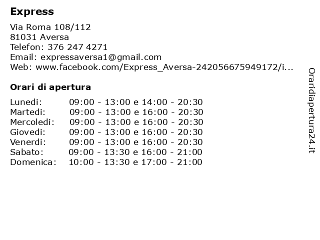 | Sabato | 09:00-13:30 e 16:00-21:00 |