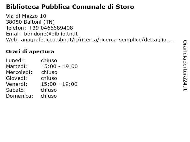 Martedi | 15:00-19:00 |