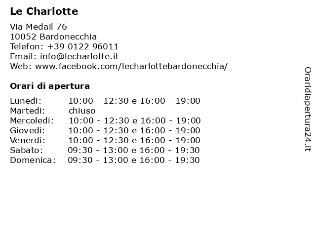 | Lunedi | 10:00-12:30 e 16:00-19:00 |