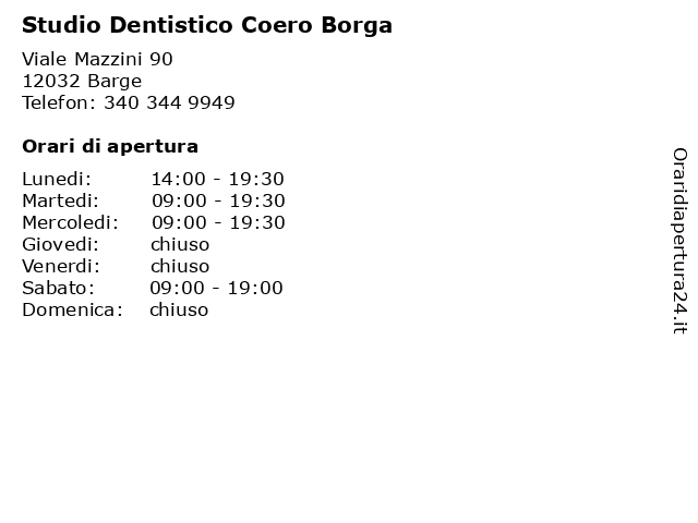 1 Studio Dentistico Coero Borga (distanza: 0,14 km) Via Monviso 2, 12032 Barge borga, centro medico, coero, dentistico, dottori, odontoiatra, studio, studio odontoiatrico 2 Coero Borga Alessandro (distanza: 0,38 km) Via Vottero 35, 12032 Barge alessandro, automobili, borga, coero, nuove, rivend, usate 3 Coero Borga Cristina (distanza: 0,52 km) Via Broardi 1, 12032 Barge abbigl, borga, coero, comm, cristina, dett, genere 4 Automobili Coero Borga (distanza: 1,22 km) Via Bagnolo 72/A, 12032 Barge auto, automobili, borga, coero, il, lusso, mito, negozio, servizio 5 C.B.F. di Coero Borga Fulvio (distanza: 2,24 km) Via Gabiola 44/c, 12032 Barge borga, c.b.f., coero, ditta specializzata in illuminazione, fulvio 6 Automobili Coero Borga Srl (distanza: 3,75 km) Via Cave 2, 12031 Bagnolo Piemonte automobili, borga, coero, nuove, rivend, srl, usate |