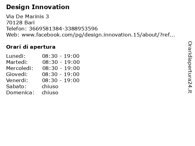 | Venerdi | 08:30-19:00 |