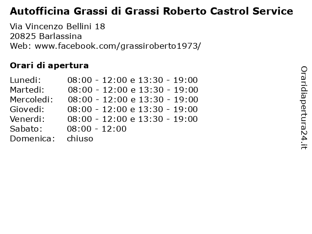 | Lunedi | 08:00-12:00 e 13:30-19:00 |