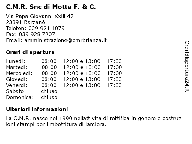 Tag di ricerca per C.M.R. Snc di Motta F. & C.:di, snc, c., f., motta, c.m.r. |