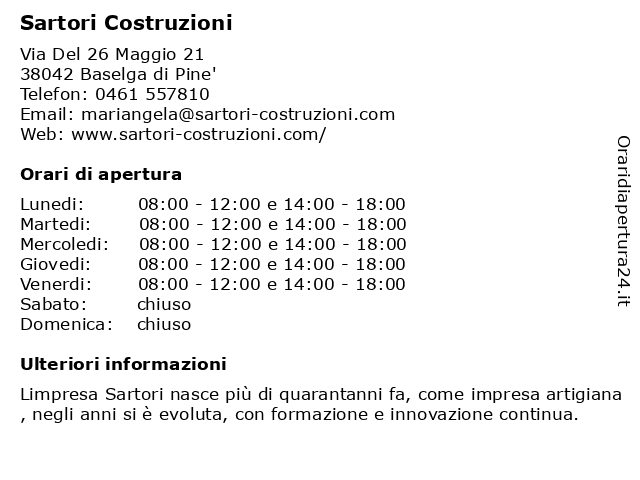 | Lunedi | 08:00-12:00 e 14:00-18:00 |