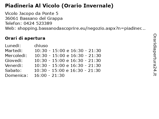 | Martedi | 10:30-15:00 e 16:30-21:30 |