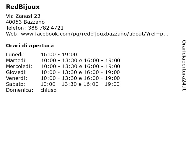 | Sabato | 10:00-13:30 e 16:00-19:00 |