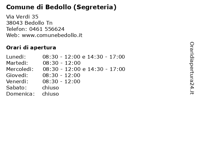 Lunedi | 08:30-12:00 e 14:30-17:00 |