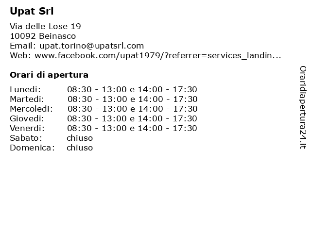 | Lunedi | 08:30-13:00 e 14:00-17:30 |