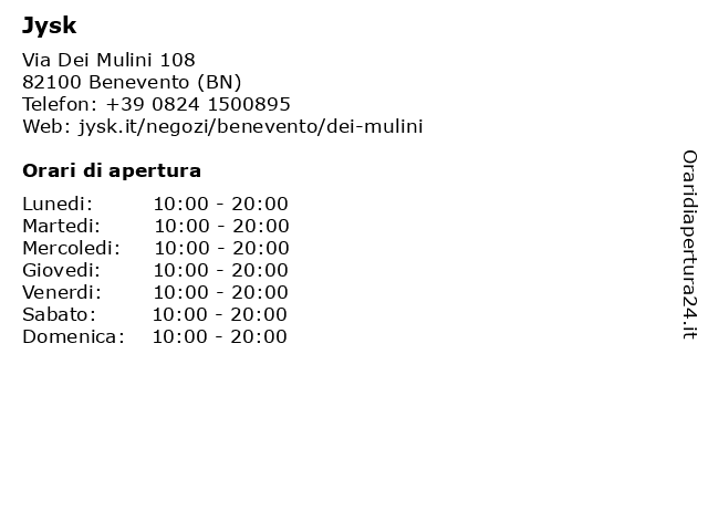 3 Jysk (distanza: 41,75 km) Via Santa Maria La Nova snc, 80021 Afragola arredamento, bagno, jysk, mobili, soggiorno, ufficio 5 Jysk (distanza: 46,53 km) Via Cimiliarco 180, 80026 Casoria acquisti, jysk, prodotti, supermercato, vendite al dettaglio 6 Jysk (distanza: 52,23 km) Via Napoli 135, 80053 Castellamare di Stabia arredo, flou, jysk, mobili, pivato |