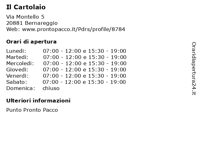 | Sabato | 07:00-12:00 e 15:30-19:00 |