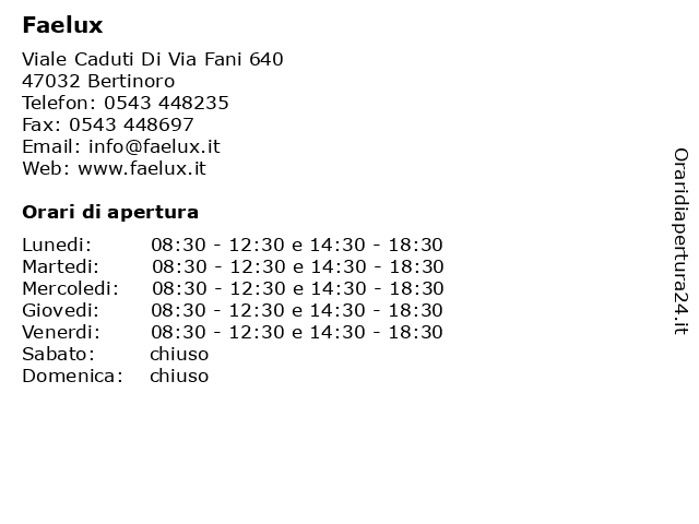Lunedi | 08:30-12:30 e 14:30-18:30 |