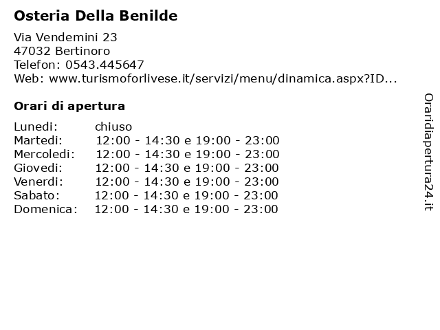| Domenica | 12:00-14:30 e 19:00-23:00 |