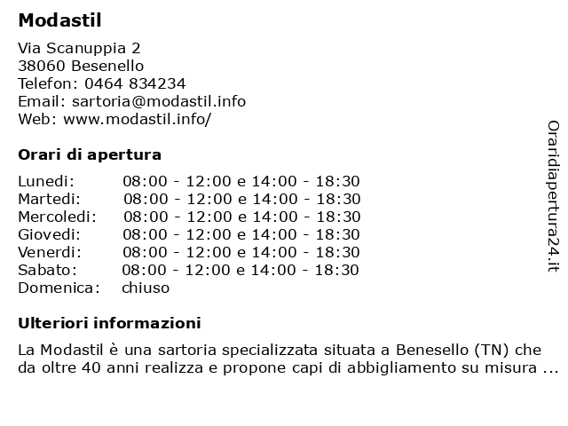| Sabato | 08:00-12:00 e 14:00-18:30 |