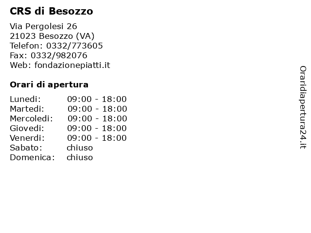 1 CRS - Besozzo (distanza: 0,00 km) Via Pergolesi 26, 21023 Besozzo (VA) associazione, besozzo, crs, volontariato 2 Sportello Rilascio PIN CRS Carta Regionale dei Servizi (distanza: 0,84 km) Via Mazzini 4, 21023 Besozzo carta, carta regionale dei servizi, crs, dei, pin, regionale, rilascio, rilascio del pin e del puk della carta regionale dei servizi, servizi, sportello, sportello rilascio pin 3 Sportello Rilascio PIN CRS Carta Regionale dei Servizi (distanza: 2,46 km) Via Matteotti 2, 21020 Bardello carta, carta regionale dei servizi, crs, dei, pin, regionale, rilascio, rilascio del pin e del puk della carta regionale dei servizi, servizi, sportello, sportello rilascio pin 4 Sportello Rilascio PIN CRS Carta Regionale dei Servizi (distanza: 4,23 km) Piazza Cavour snc, 21024 Biandronno carta, carta regionale dei servizi, crs, dei, pin, regionale, rilascio, rilascio del pin e del puk della carta regionale dei servizi, servizi, sportello, sportello rilascio pin 5 Sportello Rilascio PIN CRS Carta Regionale dei Servizi (distanza: 6,17 km) Via G. Cerini 2, 21030 Brenta carta, carta regionale dei servizi, crs, dei, pin, regionale, rilascio, rilascio del pin e del puk della carta regionale dei servizi, servizi, sportello, sportello rilascio pin 6 Sportello Rilascio PIN CRS Carta Regionale dei Servizi (distanza: 7,04 km) Via Roma 26, 21020 Barasso carta, carta regionale dei servizi, crs, dei, pin, regionale, rilascio, rilascio del pin e del puk della carta regionale dei servizi, servizi, sportello, sportello rilascio pin |